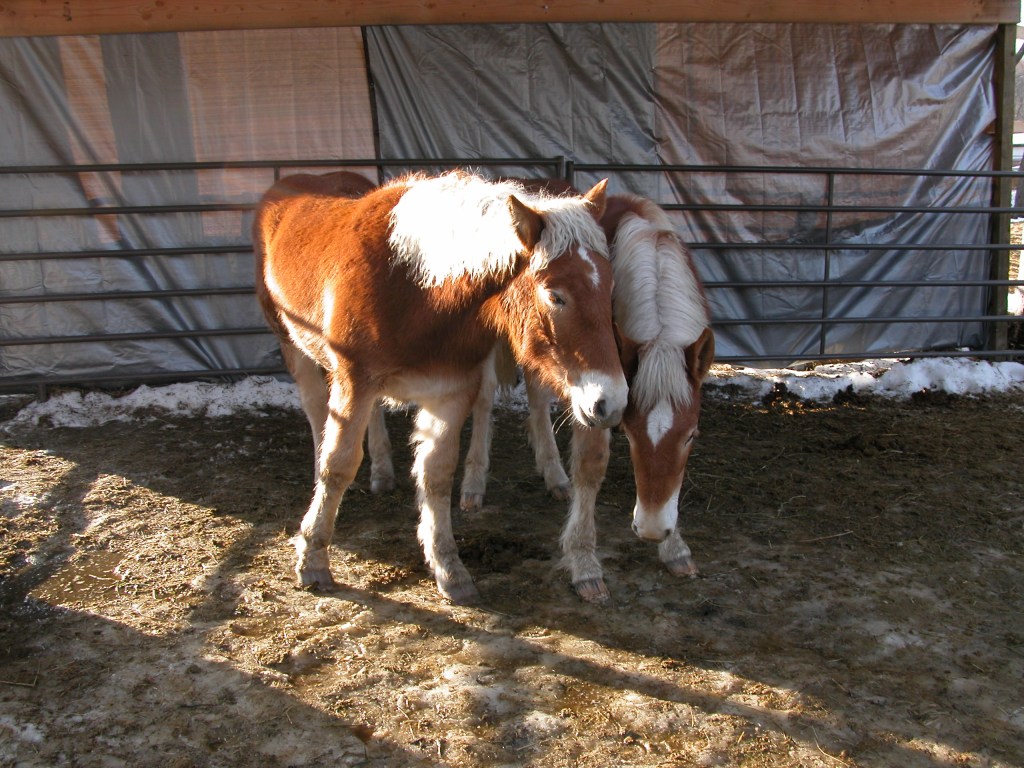My memory for dates isn’t great but it was about 2004 when we received a trailer load of horses from a ranch in Alberta, Canada. I remember it was cold that day, and the water troughs were frozen around the edges despite the stock tank heaters. I’d learned about the ranch these horses came from at the end of the previous summer. The owner had died, leaving his wife with around 90 Suffolk Punch drafts and draft crosses that he used in the PMU (pregnant mare urine) industry. Ranchers collected the urine from the pregnant mares, which was used in manufacturing hormone replacement therapy drugs such as Premarin and Prempro, but much more about that later. The rancher’s wife’s name is burned into my memory, never to be forgotten, but I won’t mention it here. She had decided to get rid of all the horses the easiest way, which was to load them onto trailers and send them to slaughter. The horse rescue world found out and scrambled to try to save them. Suffolk punches are actually rather rare (which shouldn’t matter as a horse is a horse and all of them matter,) but for some, it’s a motivating factor. Most of the purebreds went to a ranch in Texas, while we dredged up money enough to rescue four crossbred mares and three foals and sent our check north with a plan to get them trailered down within a few weeks.