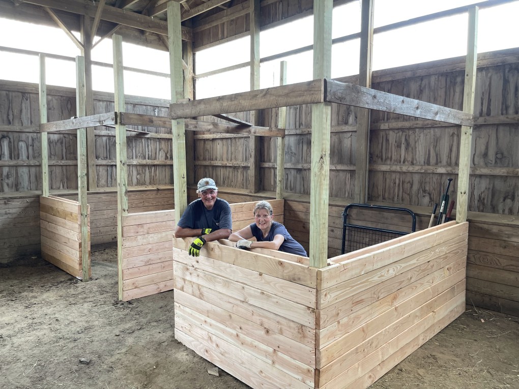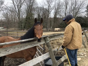 Things you’ll do while volunteering will include: cleaning stalls, filling water buckets, scrubbing water troughs and filling them, helping maintain the barn and indoor riding arena, helping clear paddocks of rocks to create a safe space for the horses, etc. Depending on what’s going on, it could also include helping out on property cleanup and gardening type activities, organizing equipment and gear, etc.